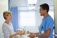 A 32-year-old man with no significant past medical history experiences acute shortness of breath, watery eyes, and twitching while working in a soybean field. The triage nurse recognizes that the symptoms might indicate organophosphate poisoning and activates the rapid response team.