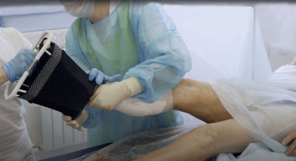 - Place two fingers between the patient’s leg and the sleeve to ensure a correct fit.