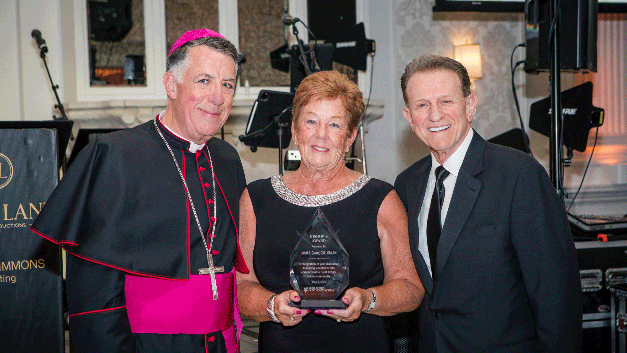 Judith T. Caruso, DNP, MBA, RN, NEA-BC, FACHE, president, Caruso Consulting, was recognized with the 2025 Bishop’s Award. This award is bestowed upon the honoree by The Most Reverend James F. Checchio, Bishop of the Diocese of Metuchen, sponsor of Saint Peter’s Healthcare System.