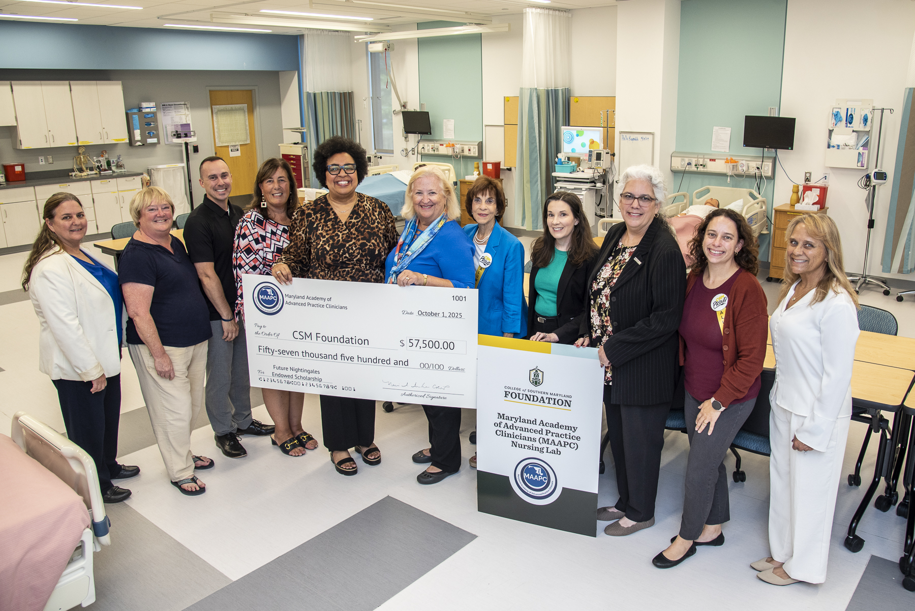 The Maryland Academy of Advanced Practice Clinicians (MAAPC) is proud to announce the establishment of The Future Nightingales Endowed Scholarship in support of full-time first- or second-year associate degree nursing (ADN) students enrolled at the College of Southern Maryland (CSM) with demonstrated financial need. MAAPC Board of Directors and members of Maryland Nurses Association (MNA) District Nine celebrated with CSM faculty and staff at a ceremony on October 1, 2025. This initiative holds special meaning, honoring the organization’s founding leaders who launched their nursing careers from the region. From its inception, MAAPC has been committed to advancing and supporting nursing education through innovative continuing education programs which focus on clinical practice, pharmacology, and leadership development. By establishing this scholarship, MAAPC honors its roots in Southern Maryland while investing in the next generation of nursing professionals.